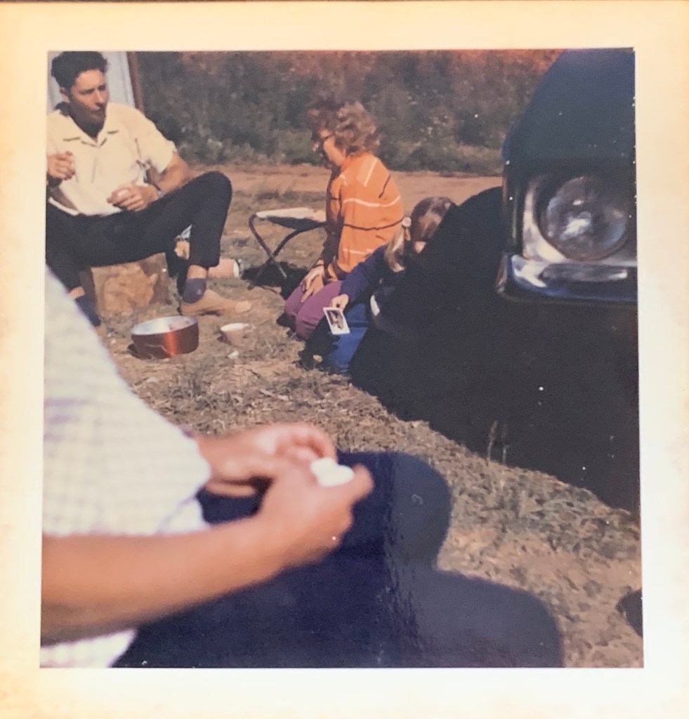 (Photo – vintage- taken by “Miss Nancy” one of the two gorgeous farm workers of my parents who cared for my sisters and I with our Friday treats. Image of a “smoko” morning tea break with them and my parents. I’m obviously shy from photos but have spectators pigtails that day. The stool in the back was mine made by my uncle (Jimmy),from a sugar cane bag for the seat. He died not long after this photo. I loved that stool forever! In between my Dad and “Miss Marj” (photographed with in foreground) was my teabag tree. I’d “rescue” everyone teabags from smoko and decorate the shrub with another teabag to create my tea tree. Growing up on a farm creatively- so with parents who allowed me to. Blessed!)